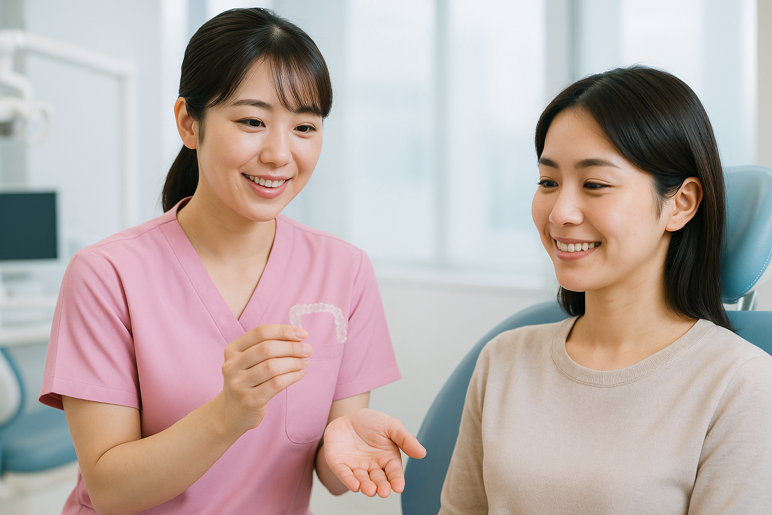 従来のワイヤー矯正とは異なり、金属の装置を使用しないため、見た目のストレスが少なく、取り外しができることが大きな特徴です。