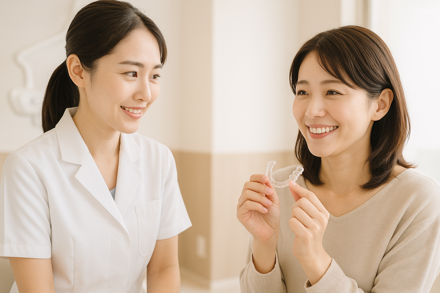 大人になってからでも、矯正治療は十分に可能です。 特にインビザラインなどのマウスピース矯正は、「仕事で装置を目立たせたくない」「飲み会やイベントが多い」といった大人のライフスタイルにも合わせやすい方法です。